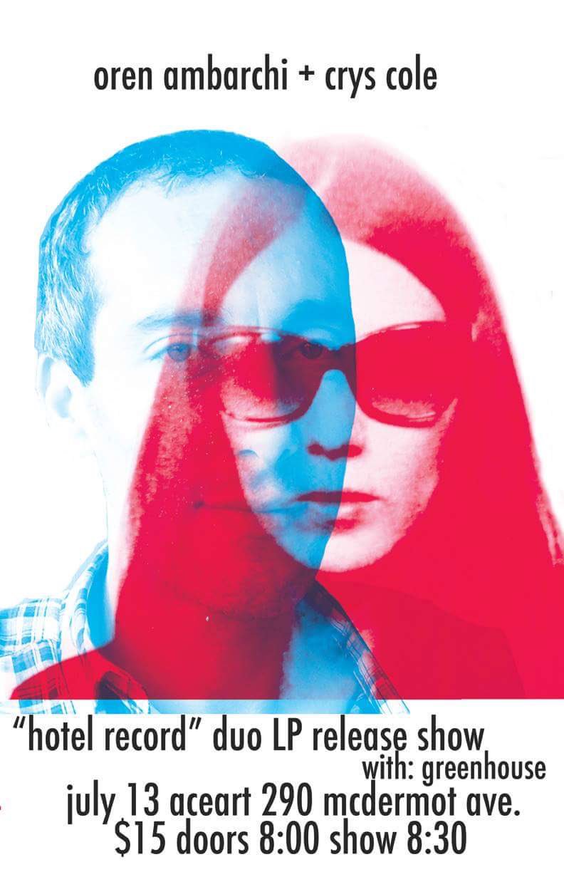 This Thusday July 13 evening, Oren Ambarchi & i will perform in my hometown Winnipeg (Canada) at ace art inc. This night will be a pre-launch for our new double LP Hotel Record, which comes out officially in early September on Black Truffle Records and we will have a limited quantity of the 2LP for sale on the night. Big thanks to Curran Faris for organizing this event and for opening the night with his project Greenhouse!